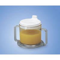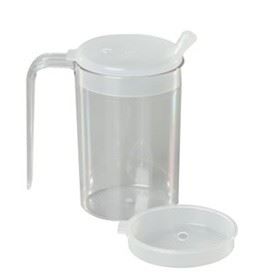 Specially designed lid makes it possible to drink without the need to raise the head. The flow of fluid can be controlled by sipping on the mouthpiece or, in the case where a person does not have the sucking ability, by placing the fingers over the vent holes in the lid. Promotes independent drinking, reduces the need for caregiver assistance, enables the user to drink while lying down and reduces the risk of choking. Spill-resistant even when tipped over. Ergonomic design is easy to hold. Ideal for adults and children. Can be used with hot or cold fluids. Holds 6.8 oz. Dishwasher and microwave safe. Â