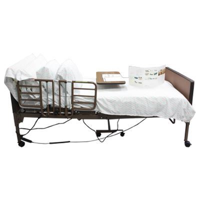 This full-electric lightweight homecare bed offers a low bed pan height to mitigate potential injury of patients from falling out of bed. The versatile dual position caster design allow inside frame (IC) mounts for low bed configuration while providing conversion to a conventional full electric homecare by relocating the casters outside to the bed ends (OC).