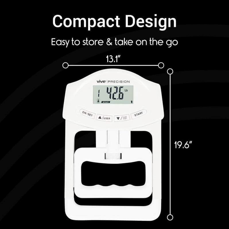 The Precision grip tester accurately measures grip strength up to 198 pounds in 0.2-pound increments.