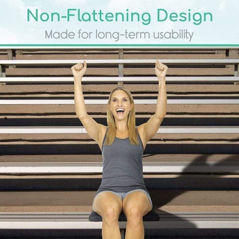 The degree to which the gel cushion will flatten out will vary from person to person as the cushion gently contours to the body, evenly distributing the weight. The resilient gel seat cushion returns to its original shape after each use.