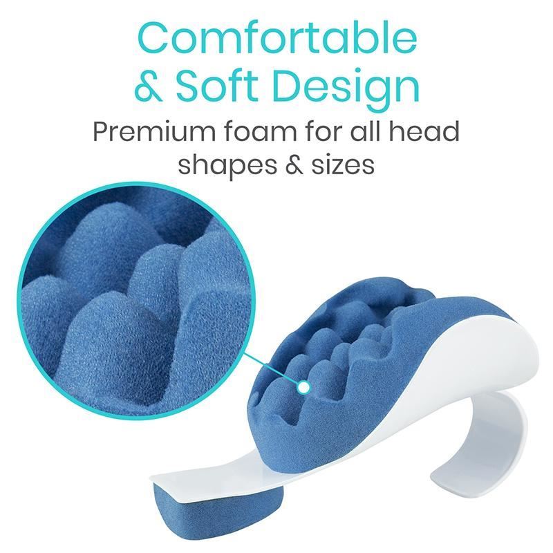 Gently supports the head and natural cervical alignment to relieve painful tension and promote deep relaxation