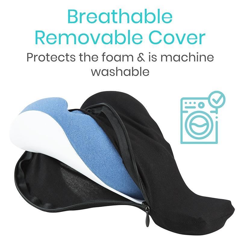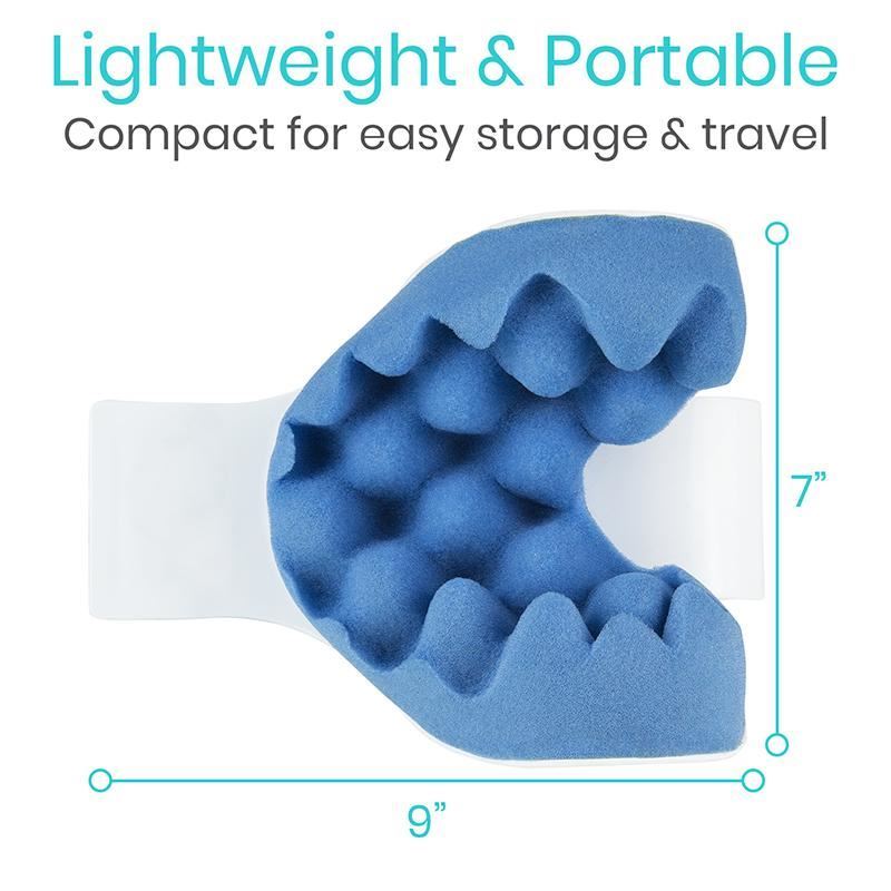 Cradles and supports your head to relieve neck pain and pressure, bulging discs, pinched nerves, TMJ and sore muscles