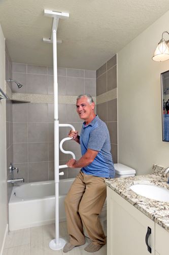 Yes, because it is tension mounted â you can place the Security Pole & Curve Grab Bar anywhere in the home â making it easy to stand wherever you go.