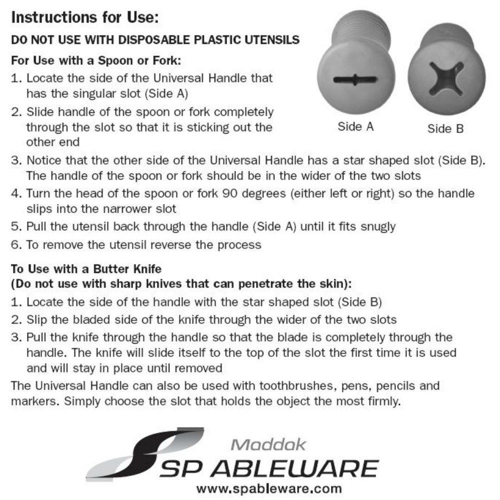 Universal Built-Up Handle SKU: PF746300000 $24.99 Qty: Add to cart Custom wishlist OK Add to wishlist Add to compare list Email a friend Ergonomic, soft, built-up handle makes it easier for people with arthritis or limited grasping ability to self-feed and perform other activities of daily living. Multi-purpose handle easily and instantly creates a larger gripping surface on most standard eating utensils β forks, knives, spoons β eliminating the need for special built-up utensils. Soft, ribbed handle fits comfortably in the hand and reduces pain and cramping. Β Can also be used with other everyday items such as pens, pencils, toothbrushes, crochet hooks and knitting needles. 1 ΒΎβ (4.4 cm) diameter handle accommodates utensils with widths from ΒΌ β 1β (.64 β 2.54 cm). Measures 3 5/8β (9.22 cm). Dishwasher safe. Package of 4 Product tags arthritis (6) , ergonomic (1) Customers who bought this item also bought Conni Mate Bed Pad Special Instructions: Please make sure to add all the items and options together to ensure proper pricing. Product Code : PCCD085095-25-1 $0.00 Add to cart Add to compare list Custom wishlist OK Add to wishlist Drinking Cups & Mugs Special Instructions: Please make sure to add all the items and options together to ensure proper pricing. Product Code: PM137 $0.00 Add to cart Add to compare list Custom wishlist OK Add to wishlist